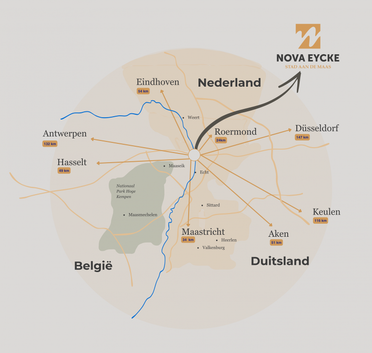 Aan de oevers van de Maas verrijst Nova Eycke. Een prestigieus woonproject dat Maaseik opnieuw doet bruisen. Nova Eycke bouwt aan de toekomst van Maaseik als hoogwaardige woonstad aan het water. Niet zomaar een nieuw project, maar een vernieuwd woonconcept dat de omgeving nieuw leven inblaast.